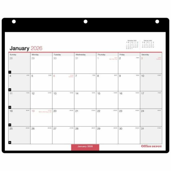Office Depot Brand Monthly Desk Wall Calendar, 11" x 8" , White, January 2026 to December 2026, OD20120026