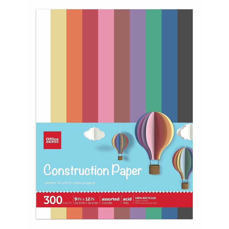 Office Depot® Brand Construction Paper, 9" x 12" , 100% Recycled, Assorted Colors, Pack Of 300 Sheets